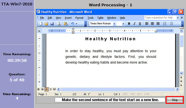 If you decide not to answer a question, click on the Skip button to make the Action Complete box appear.